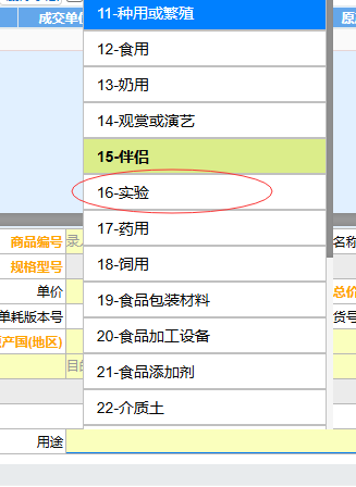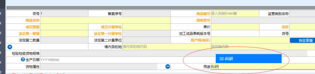 进口化妆品检测研发用样品,可在申报界面的“用途”栏勾选“16-实验”或“32-科研”。